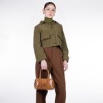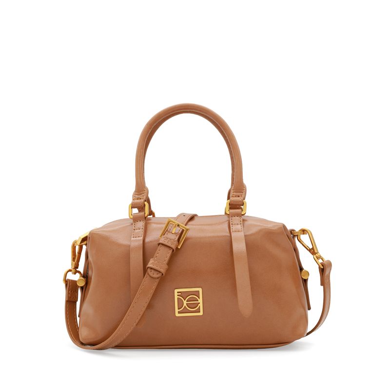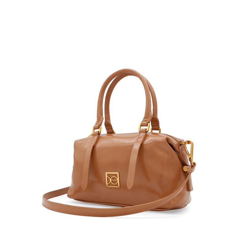 Bolso Bowling hecho con material vegano apariencia piel. Cuenta con cierre metálico de larga duración. Tiene herraje metálico de monograma Asas de hombro reforzadas. Asa larga ajustable y removible.