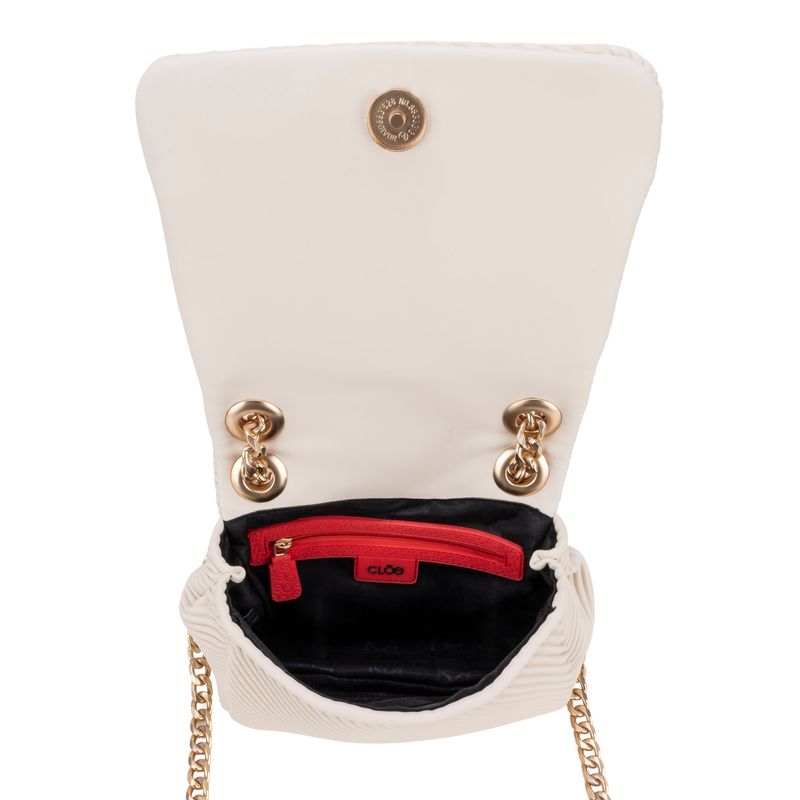 Bolso Briefcase hecho con material vegano apariencia piel. Cuenta con cubierta con broche magnético. Tiene herraje metálico de monograma. Asa larga de cadena ajustable a dos alturas.
