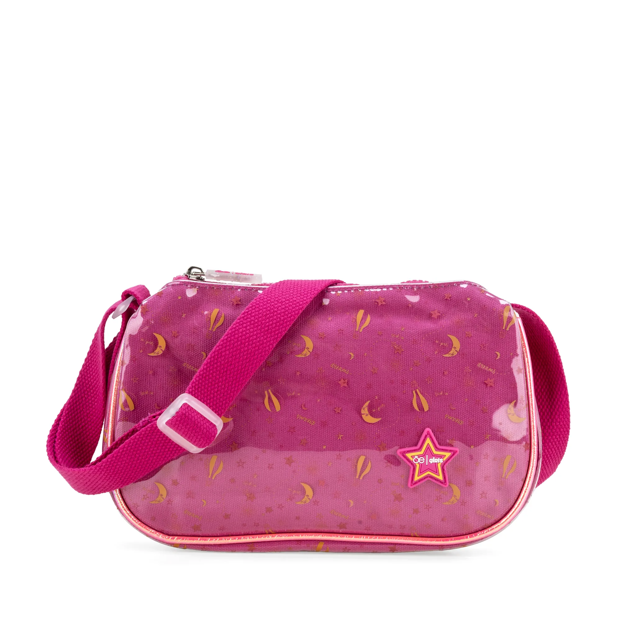 - Material mica - Cierre de larga duración - Rubber de logotipo en estrella - Asa larga ajustable - 25.5 X 5 X 16 CM