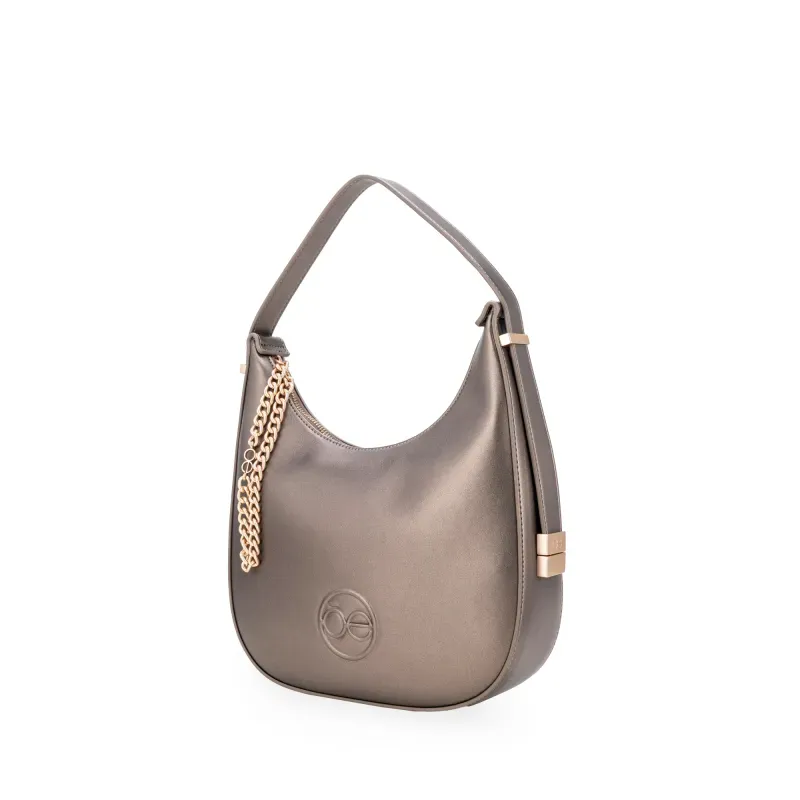 Bolsa Hobo Mediana Con Detalle De Cadena Color Inox