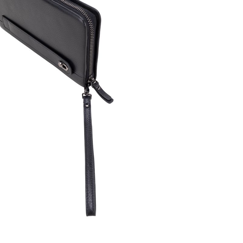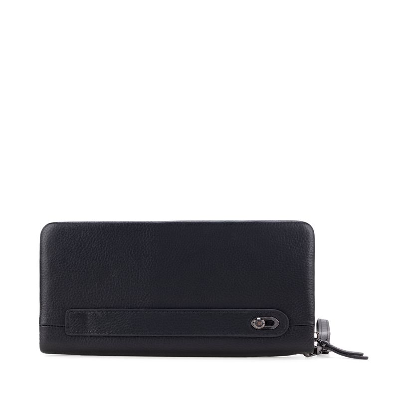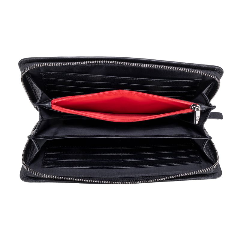 Billetera hecha con material piel genuina. Tiene cierre metálico de larga duración. Incluye maneral de fácil uso. Múltiples compartimentos internos para billetes y tarjetas.