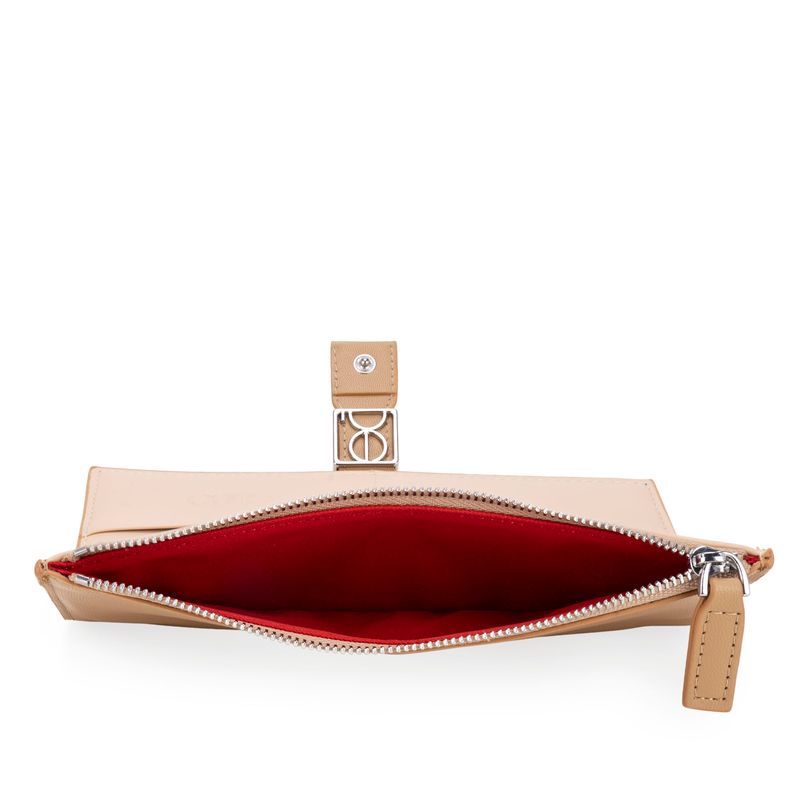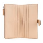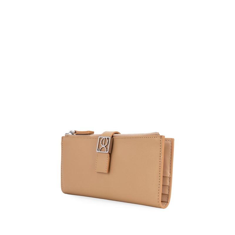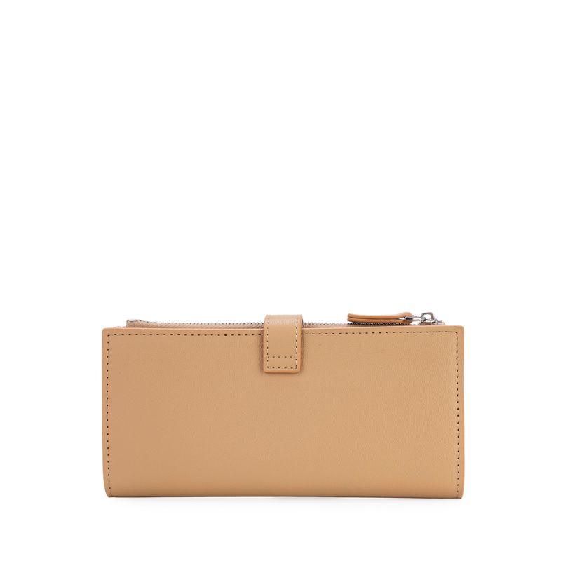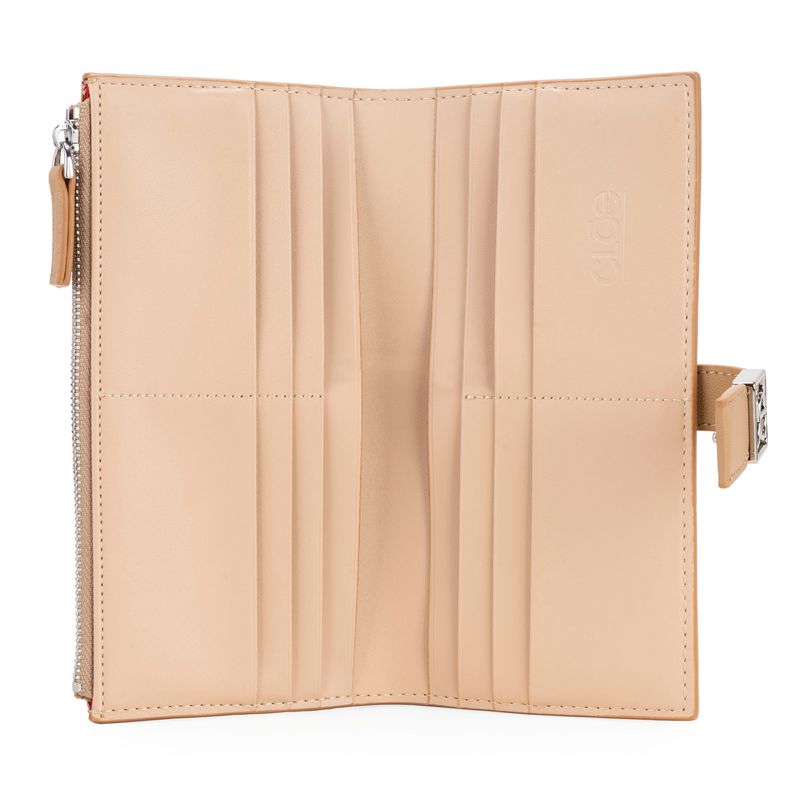 Billetera hecha con material vegano apariencia piel. Cuenta con cierre metálico de larga duración. Broche magnético. Monedero. Herraje de monograma. Múltiples compartimentos internos para billetes y tarjetas.