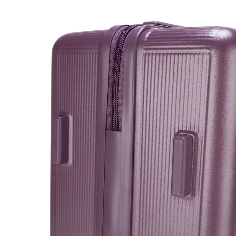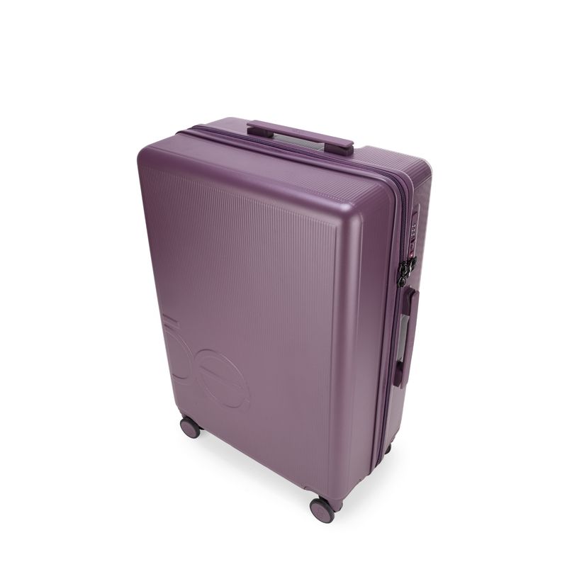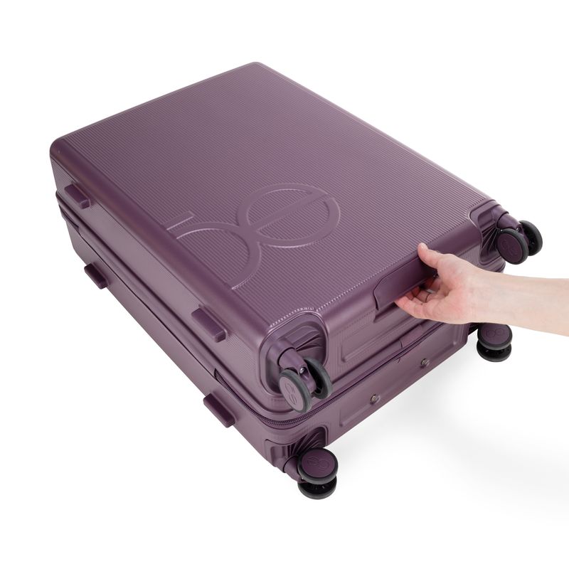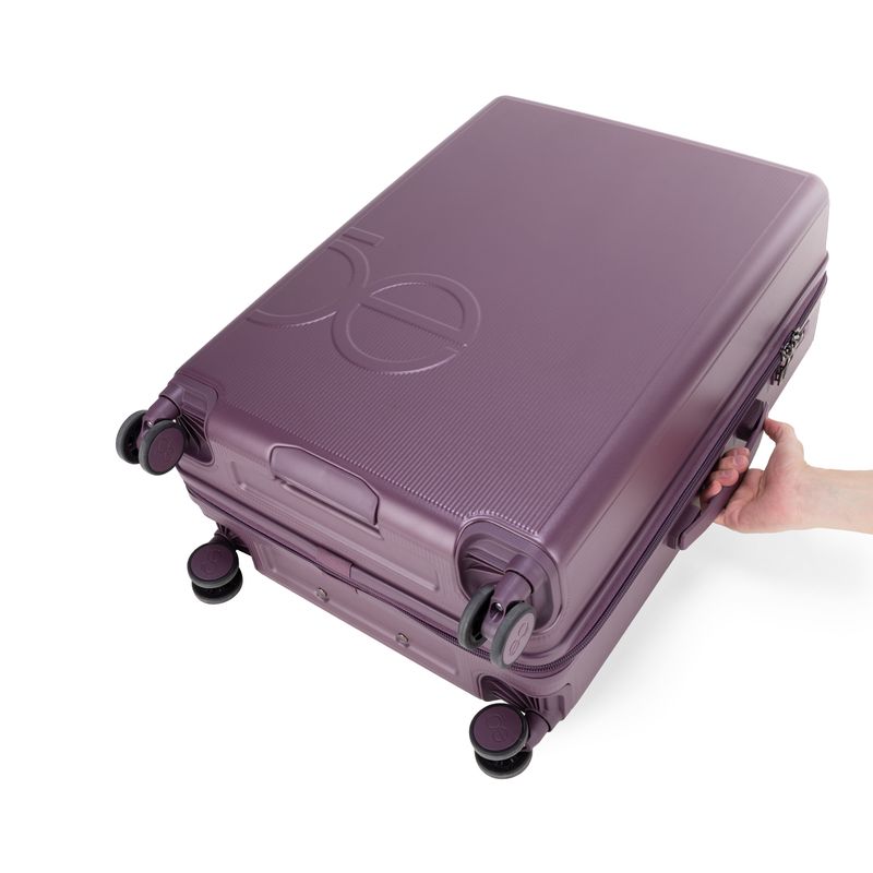 Equipaje vertical hecho con material policarbonato rígido. Cuenta con candado por combinación de seguridad TSA. Tiene ligero bastón de dos alturas. Cuatro ruedas dobles giratorias con movimiento 360°. Incluye funda textil protectora.