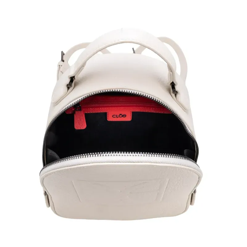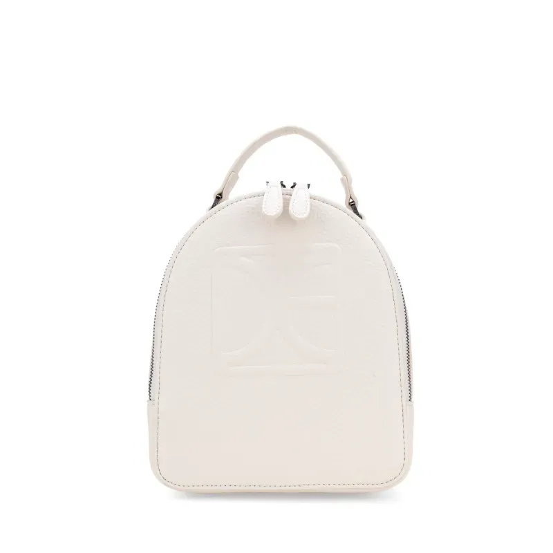 Backpack hecha de material vegano. Cuenta con asas traseras ajustables con herraje de monograma. Asa corta. Tiene monograma en relieve.