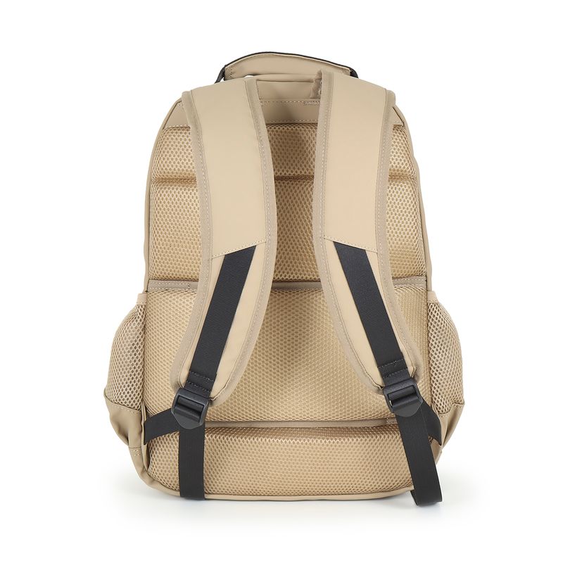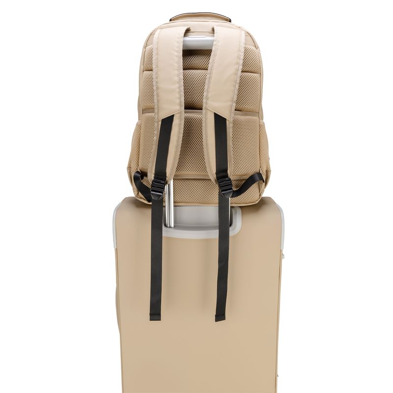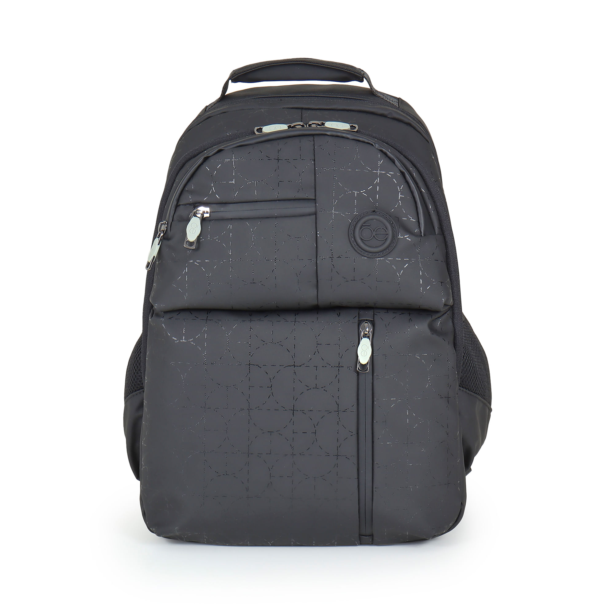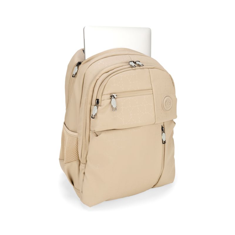 Backpack hecha con material textil con estampado glossy. Cuenta con cierres de larga duración. Tiene rubber de monograma. Compartimento interno acolchado para laptop de 16 plg. Asas traseras ajustables.