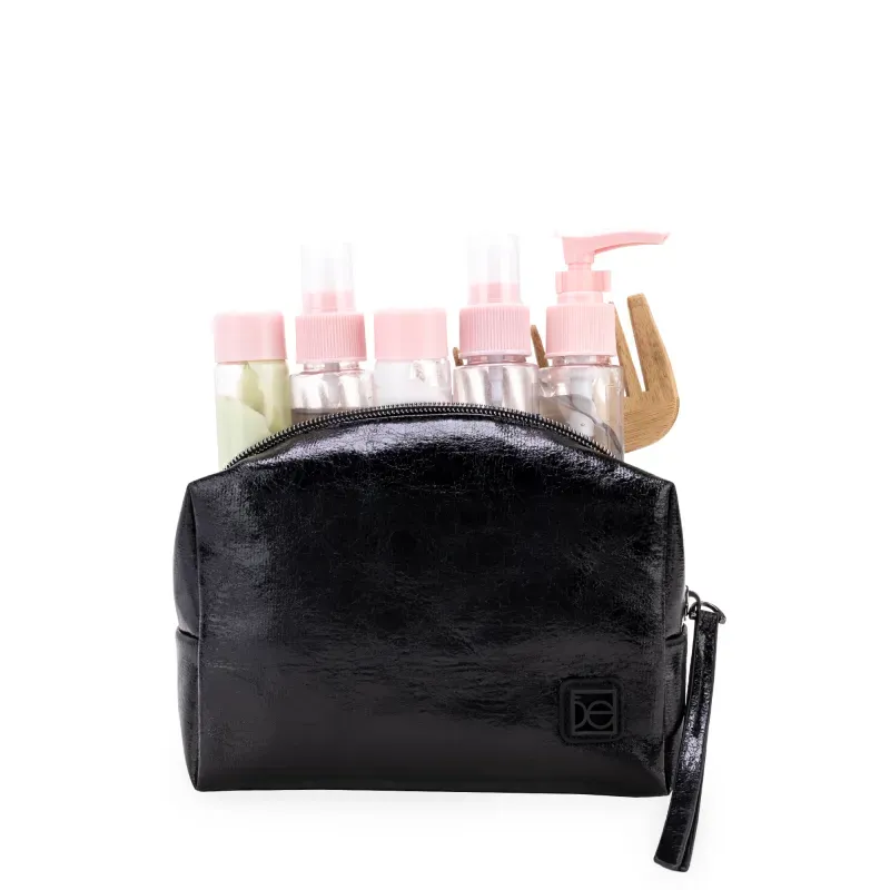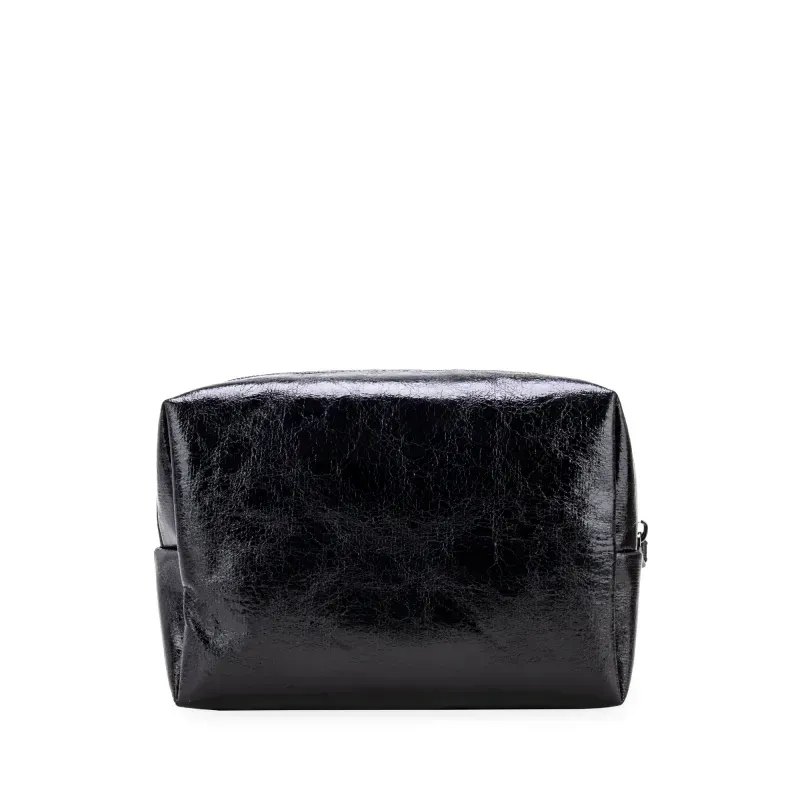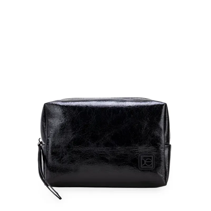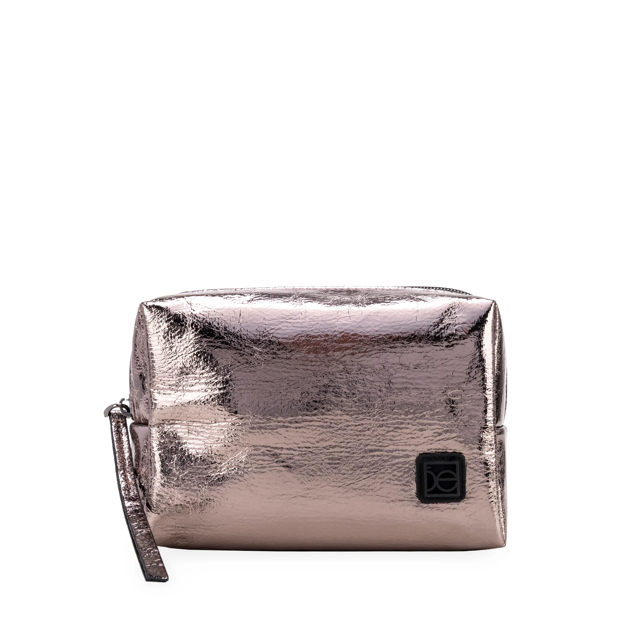 Organizador hecho con material vegano apariencia piel con acabado metálico. Cuenta con cierre de larga duración. Rubber de monograma. Capacidad de almacenamiento mediana.