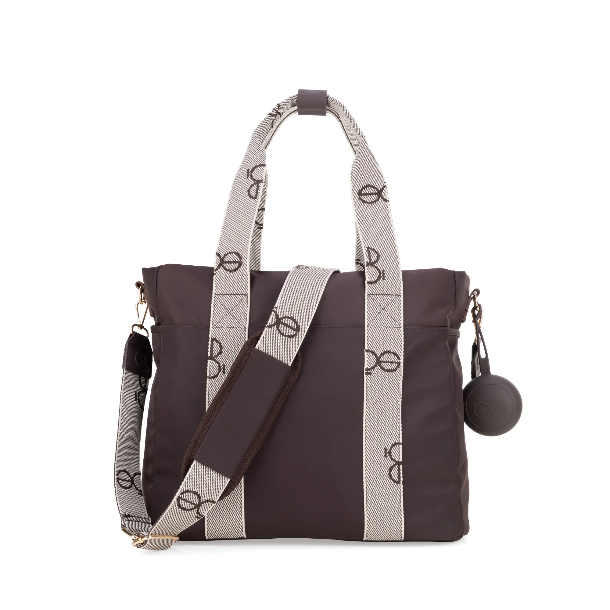 Pañalera Tote hecha con material nylon. Cuenta con cierre metálico de larga duración. Cuenta con compartimentos discretos en el exterior de fácil acceso. Incluye accesorios: Porta chupón desprendible, cambiador plegable y un par de ganchos para colgar en carriola. Asa larga ajustable y removible.
